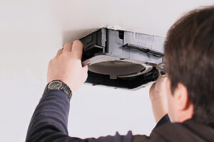 現場で確認すると、モーターから異音が発生しており、吸い込みが弱く換気能力が低下していました。